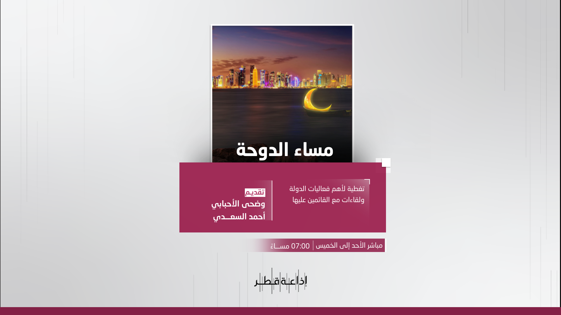 برنامج يقدم متابعة يومية للأحداث المحلية المهمة التي تقام في دولة قطر و يستضيف مسؤولين و متخصصين للحديث عن تفاصيلها