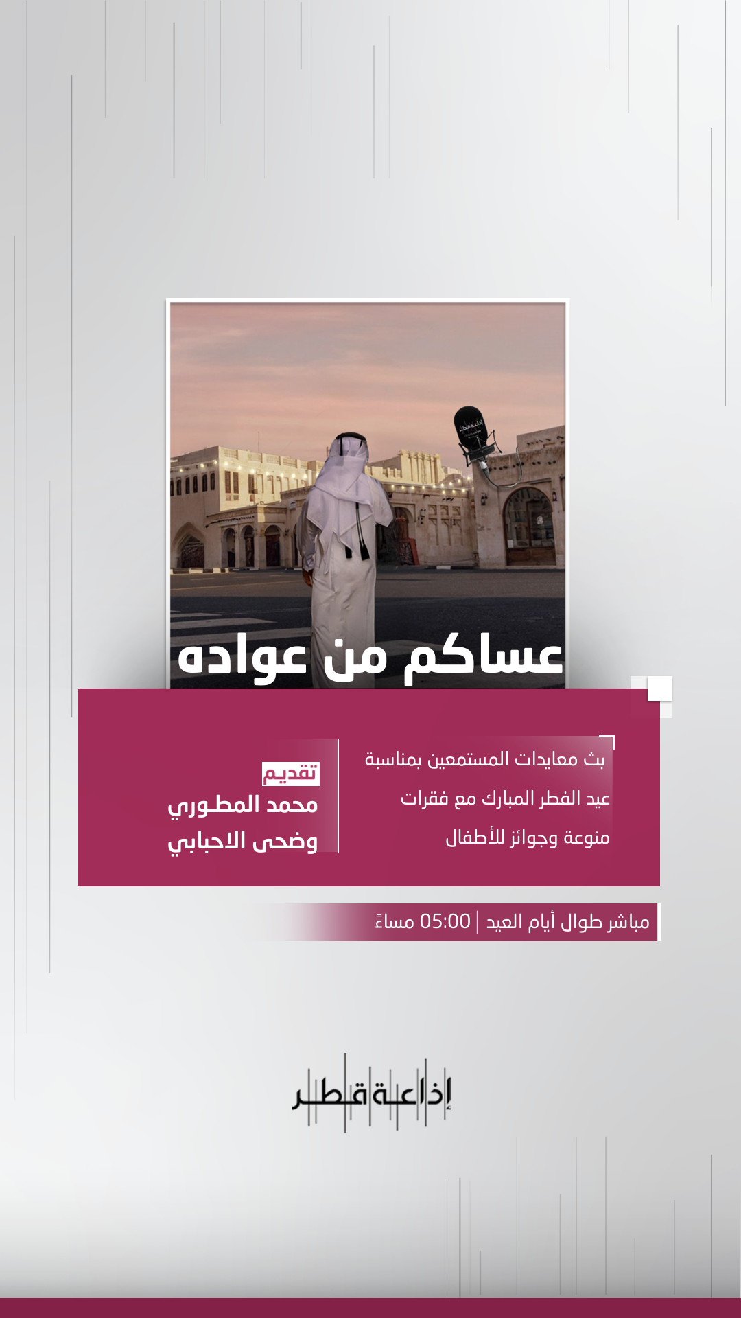 هو برنامج يستقبل التهاني بمناسبة حلول عيد الفطر المبارك من قبل المستمعين و يتضمن البرنامج فقرات خفيفة لهم